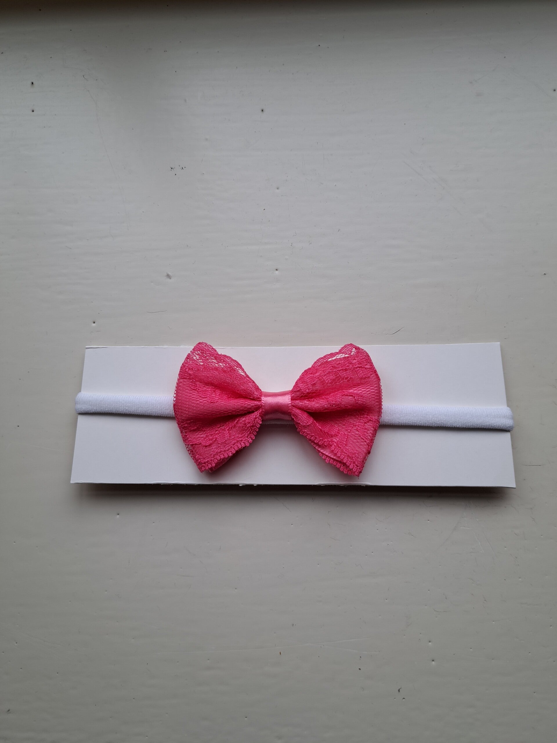Nylon haarbandje met fuschia kleur strik