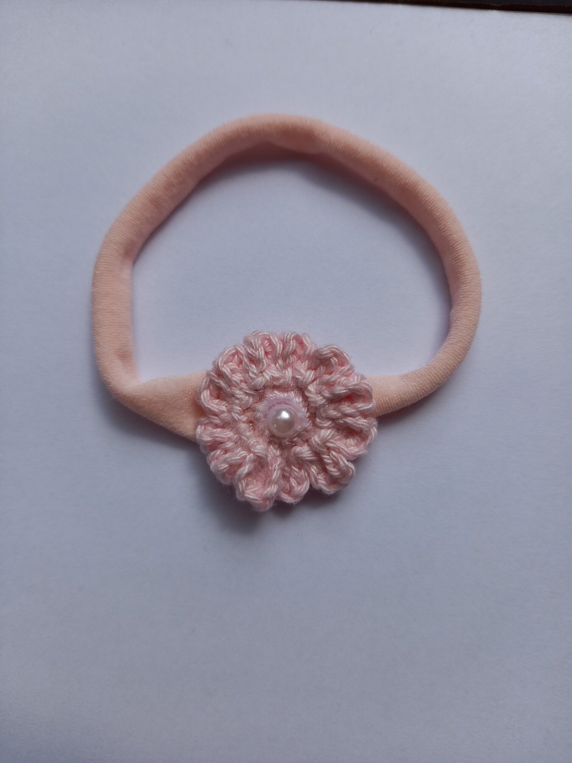 Licht roze kleur nylon haarbandje met roze kleur bloemetje