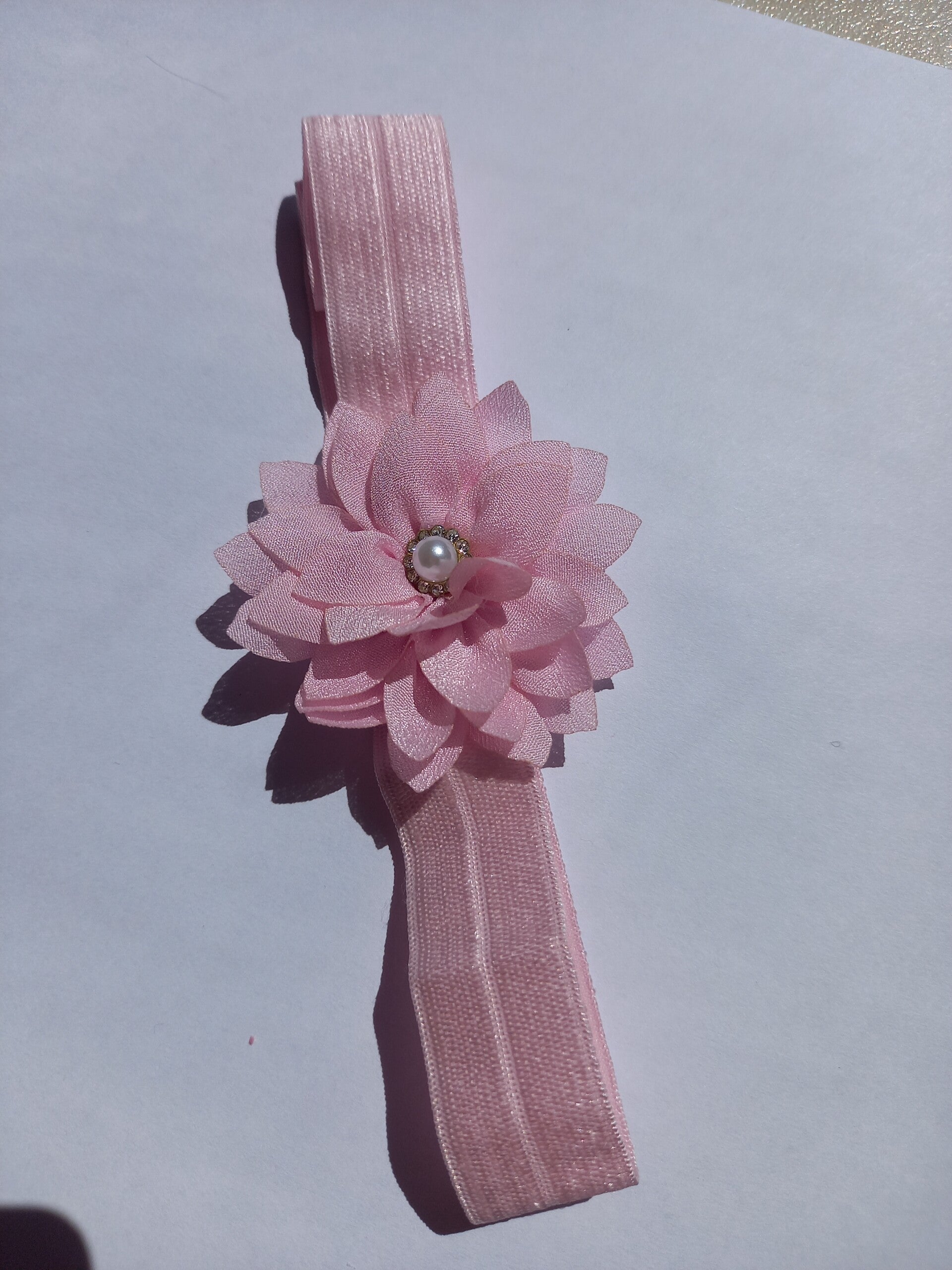 Dit is een echt sjiek haarbandje. Met een mooie bloem en een pareltje in het midden