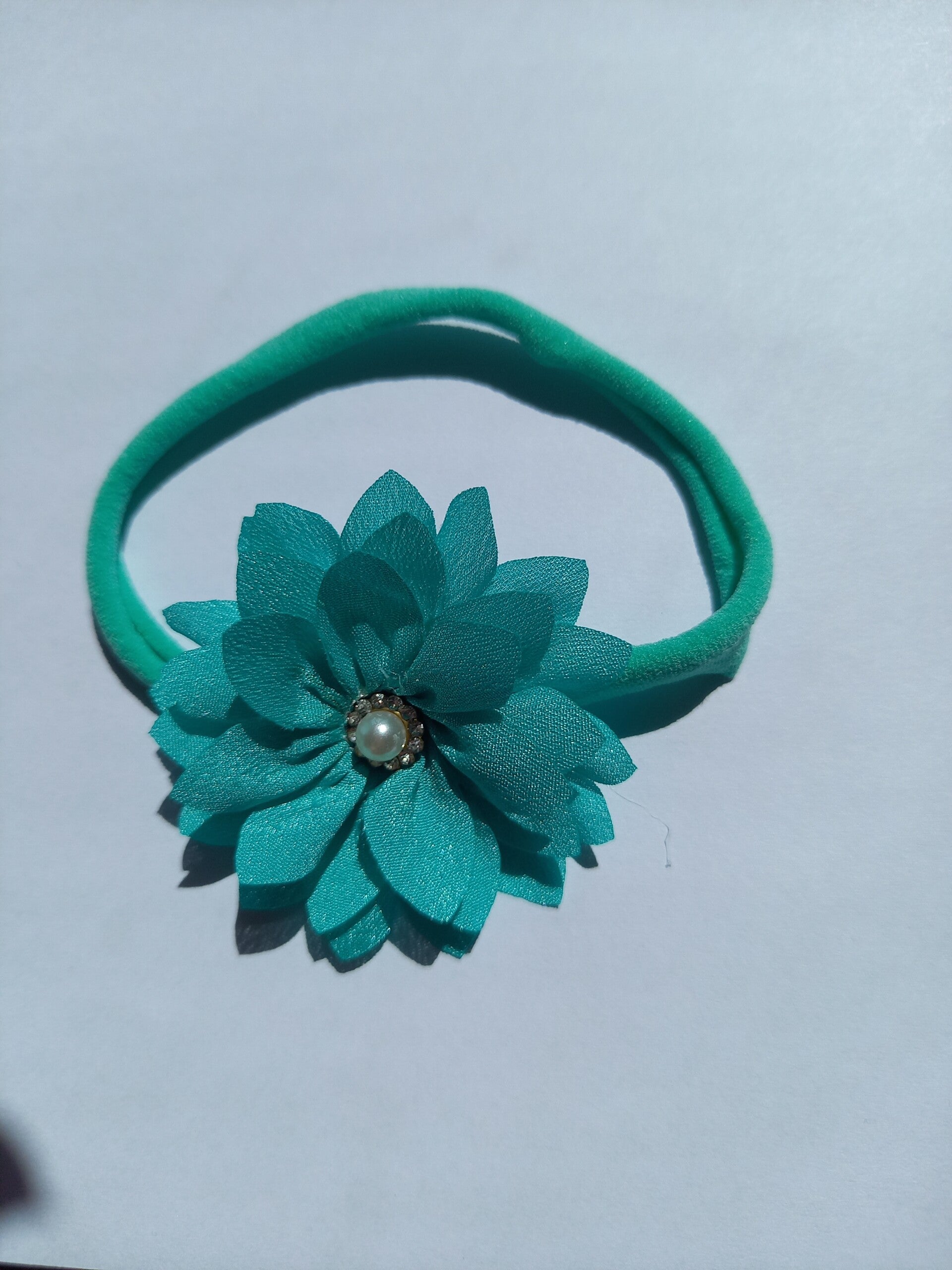 Een lekker soepel haarbandje met een mooie donker mint groene bloem
